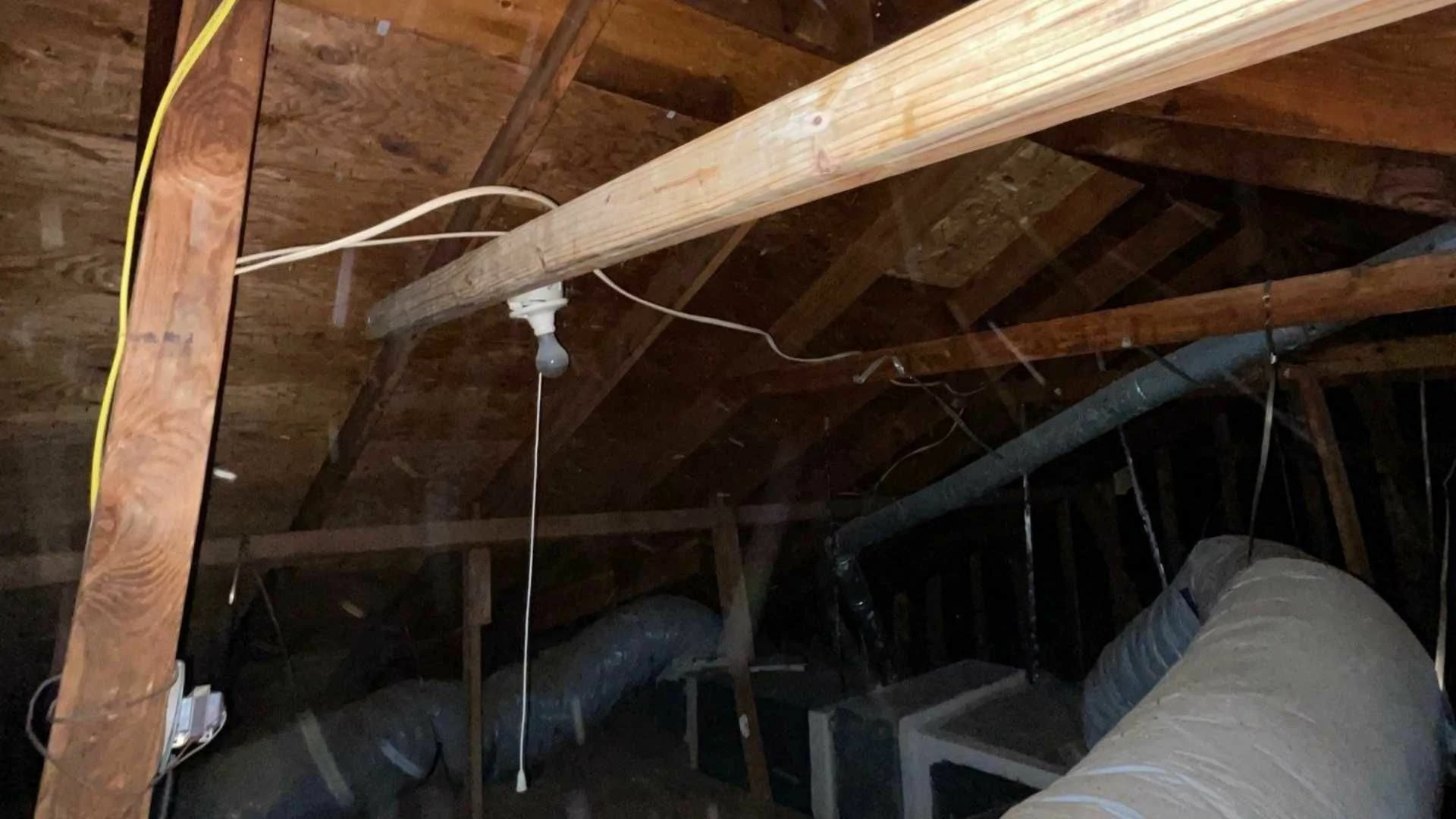 Cleared soffit ventilation obstructions, secured structural rafter ties, and restored proper attic airflow to prevent moisture buildup and structural stress.